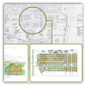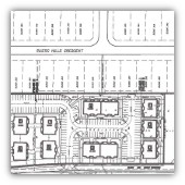 The objective of this project was to design and obtain approvals for the development of the property on the north east corner of Trim Road and Innes Road in the community of Orleans. PPAL designed a plan incorporating 138 residential condos and a convenience commercial/gas station. The orientation of the buildings was based on a desire to present a face onto Trim Road (as opposed to turning the project’s back onto this arterial road) as well as Valin Street and Rustic Hills Crescent. To achieve this, several of the buildings were sited such that their front elevations would be visible from these streets thus enhancing the visual quality of the project from the public realm. The project has since been built and sold out.
